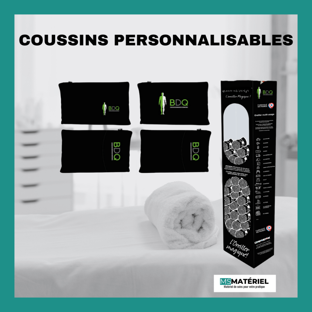 Faites de ce coussin un véritable reflet de votre identité professionnelle ! Équipez toutes vos salles de soins avec des coussins personnalisés à votre image. Nous imprimons votre logo de cabinet ou tout autre design directement sur les coussins.