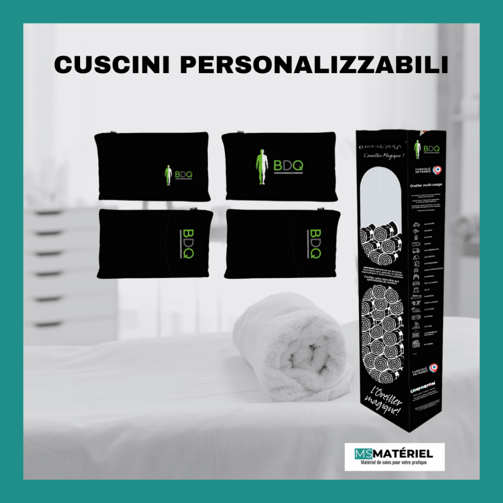 Fai di questo cuscino un vero riflesso della tua identità professionale! Equipaggia tutte le tue sale di trattamento con cuscini personalizzati a tua immagine. Stampiamo il tuo logo dello studio o qualsiasi altro design direttamente sui cuscini.
