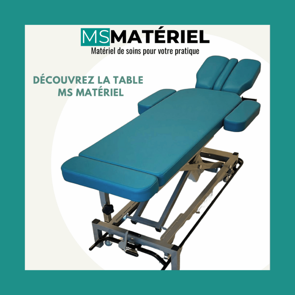 Un bon équilibre entre confort et fermeté est crucial pour les manipulations thérapeutiques : La table MS Matériel propose un plateau central ferme pour optimiser les actes techniques, tandis que la têtière offre une surface moelleuse pour le confort du patient.