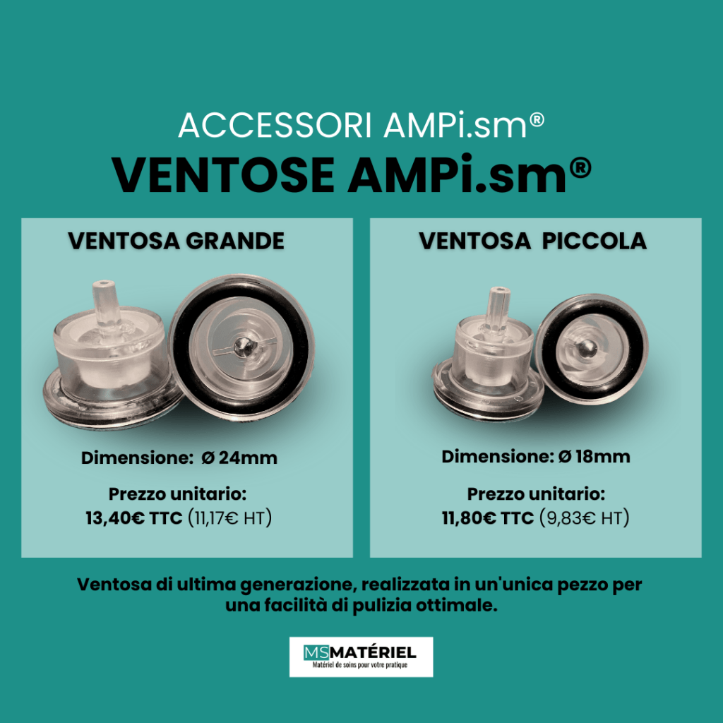 Progettate appositamente per ottimizzare le prestazioni del vostro apparecchio AMPi.sm®, queste ventose offrono una sinergia ideale tra tecnologia e performance terapeutiche.